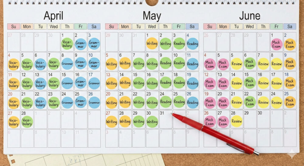 - 単語帳を3周以上回し、語彙レベルを準1級基準に引き上げる。